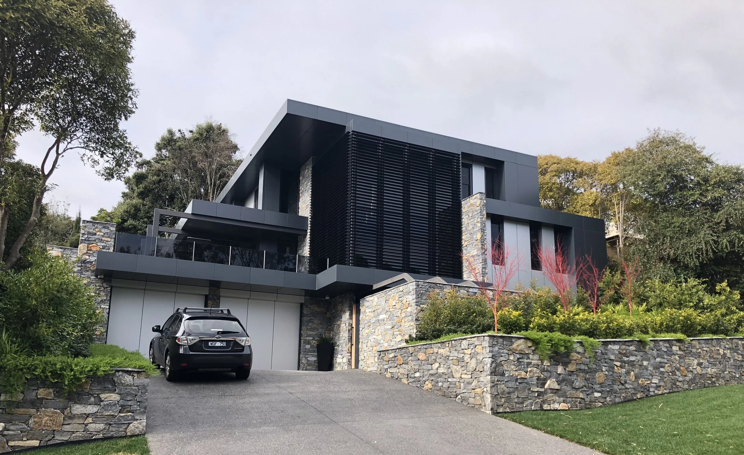 The residence is rectilinear with low-pitched roof extends over expansive glass façade atrium. This architectural feature establishes a transitional space within the dwelling, allowing light, air and passage across all levels.