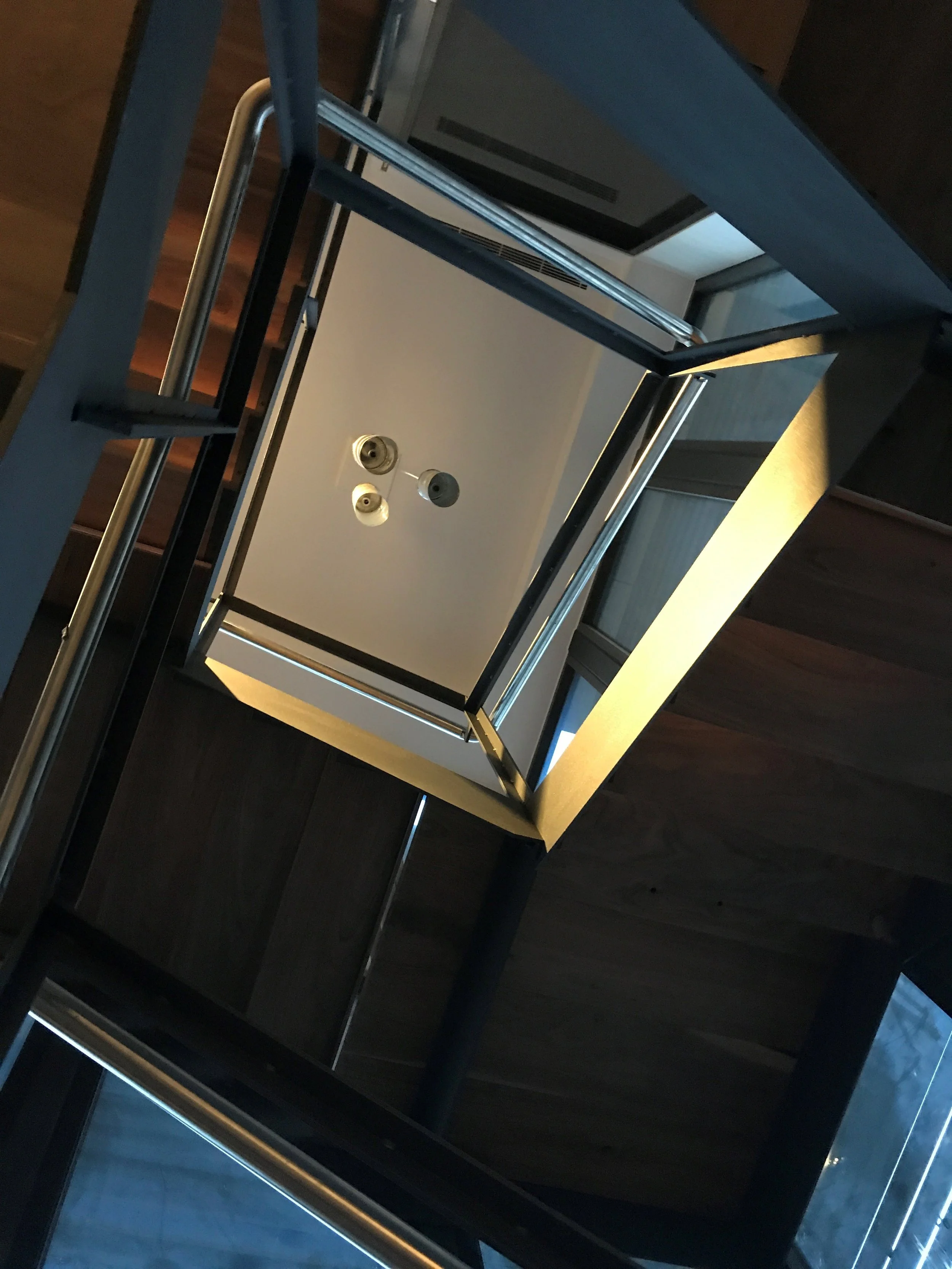 As one ascends though the residence, the transition from utility spaces and then private bedrooms enables windows that frame panoramic vistas of the surrounding landscape.